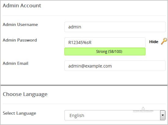 • Admin Email: Your e-mail address.