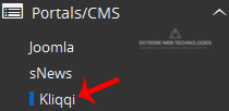4. On the left side of your screen you should locate the "Portal/CMS" category. Click on it and then click on the "Kliqqi" link that will appear.